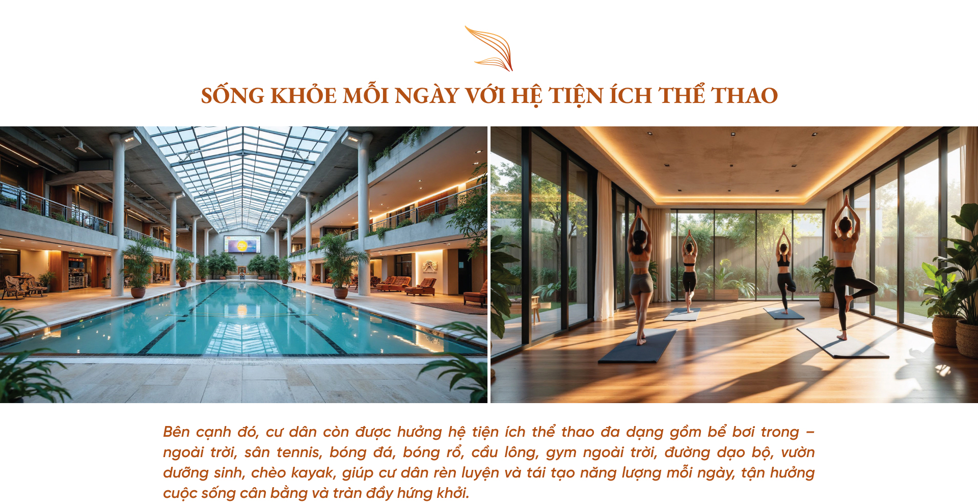 Mỗi cụm toà tháp vươn mình như một ốc đảo khép kín, với kiến trúc compound hiện đại bao bọc lấy hệ tiện ích đặc quyền, từ hệ thống tầng thương mại khối đế với đầy đủ loại hình thương mại dịch vụ, giải trí thời thượng, GenZ Hub… Đặc biệt, tại lõi cảnh quan trung tâm của các cụm tháp là bể bơi khoáng nóng rộng lớn, một ‘tiểu resort’ giữa lòng nội khu, nơi cư dân tận hưởng 365 ngày thư thái, tái tạo thân – tâm – trí trong làn nước tinh khiết. Bao quanh là hệ cảnh quan xanh mát, vườn dạo bộ, không gian thể thao và thư giãn ngoài trời, góp phần đưa dự án trở thành biểu tượng sống wellness giữa lòng đô thị.